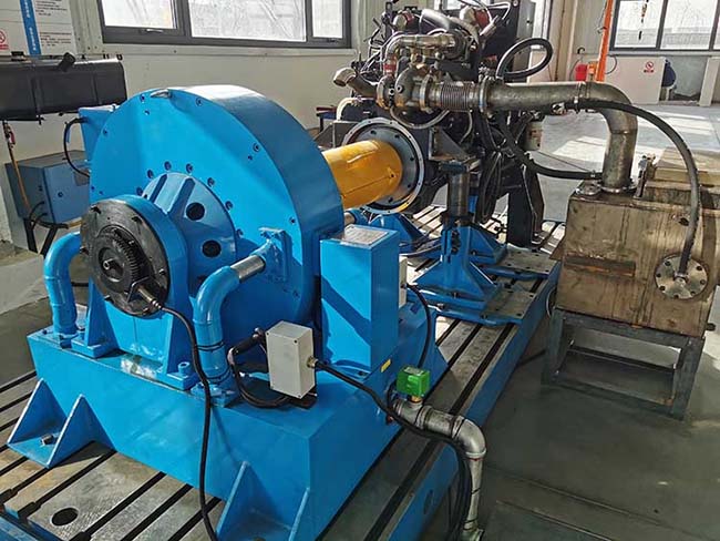 二、測(cè)功機(jī)的分類及原理 測(cè)功機(jī)為被測(cè)機(jī)的動(dòng)力輸出提供負(fù)載,吸收被測(cè)機(jī)輸出的機(jī)械能,并將其轉(zhuǎn)換為其他形式的能量,并測(cè)量被測(cè)機(jī)的轉(zhuǎn)矩、轉(zhuǎn)速等動(dòng)力性能參數(shù)。某些測(cè)功機(jī)還可以根據(jù)測(cè)試需要作為原動(dòng)機(jī)拖動(dòng)被測(cè)機(jī)運(yùn)轉(zhuǎn),并對(duì)相關(guān)參數(shù)進(jìn)行測(cè)量。測(cè)功機(jī)是根據(jù)作用力矩與反作用力矩大小相等方向相反的原理來測(cè)量扭矩,因此所測(cè)扭矩可以通過作用在測(cè)功機(jī)上的旋轉(zhuǎn)力矩(即制動(dòng)器外殼反力矩)來指示。 根據(jù)測(cè)功機(jī)工作原理的不同,主要分為水力測(cè)功機(jī)、電渦流測(cè)功機(jī)、電力測(cè)功機(jī)。 測(cè)功機(jī)原理 1、水力測(cè)功機(jī)原理 用水作為工作介質(zhì)而產(chǎn)生制動(dòng)力矩。 水力測(cè)功機(jī)的主體為水力制動(dòng)器,制動(dòng)器由轉(zhuǎn)子和定子外殼組成。定子外殼有滾動(dòng)軸承支撐,可自由擺動(dòng),固定在外殼上的力臂可將作用在外殼上的力矩轉(zhuǎn)換為力而作用于測(cè)力裝置。轉(zhuǎn)子與發(fā)動(dòng)機(jī)輸出軸相連,被封閉在外殼內(nèi),其間充以水。工作時(shí)水由轉(zhuǎn)子帶動(dòng)獲得動(dòng)量矩并傳給外殼。這樣由發(fā)動(dòng)機(jī)加給轉(zhuǎn)子的扭矩以一個(gè)相同量作用到外殼上,發(fā)動(dòng)機(jī)輸出功率經(jīng)過水分子間相互摩擦變成熱能。在改變水層厚度來調(diào)節(jié)制動(dòng)力矩的測(cè)功機(jī)中,水不是始終充滿殼體內(nèi)腔。轉(zhuǎn)子旋轉(zhuǎn)時(shí),由于離心力的關(guān)系,水被甩向轉(zhuǎn)子外緣形成圓環(huán),轉(zhuǎn)子部分地浸濕在圓環(huán)水層中。