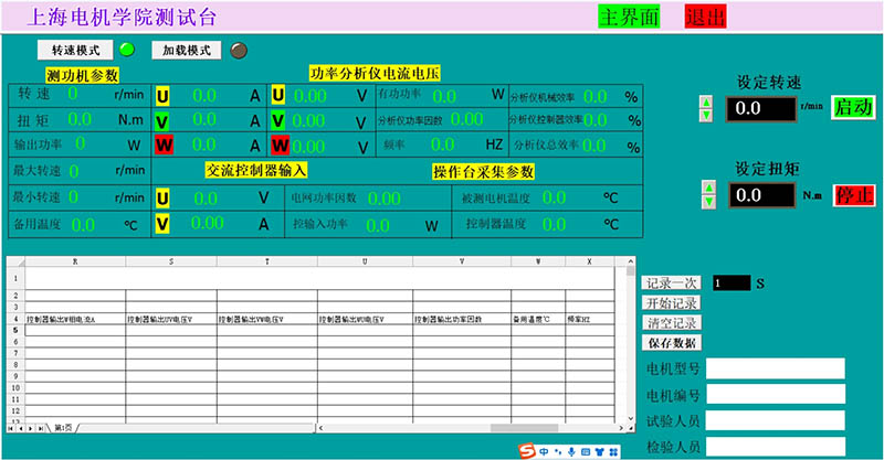 1 本軟件運行于WINDOWS XP平臺,適用于電動汽車用電機及控制器臺架性能試驗和耐久性試驗?捎刹僮魅藛T設置測量參數的名稱、單位、量程、報警值等內容。實時顯示各項測量參數值,打印各種曲線報表。